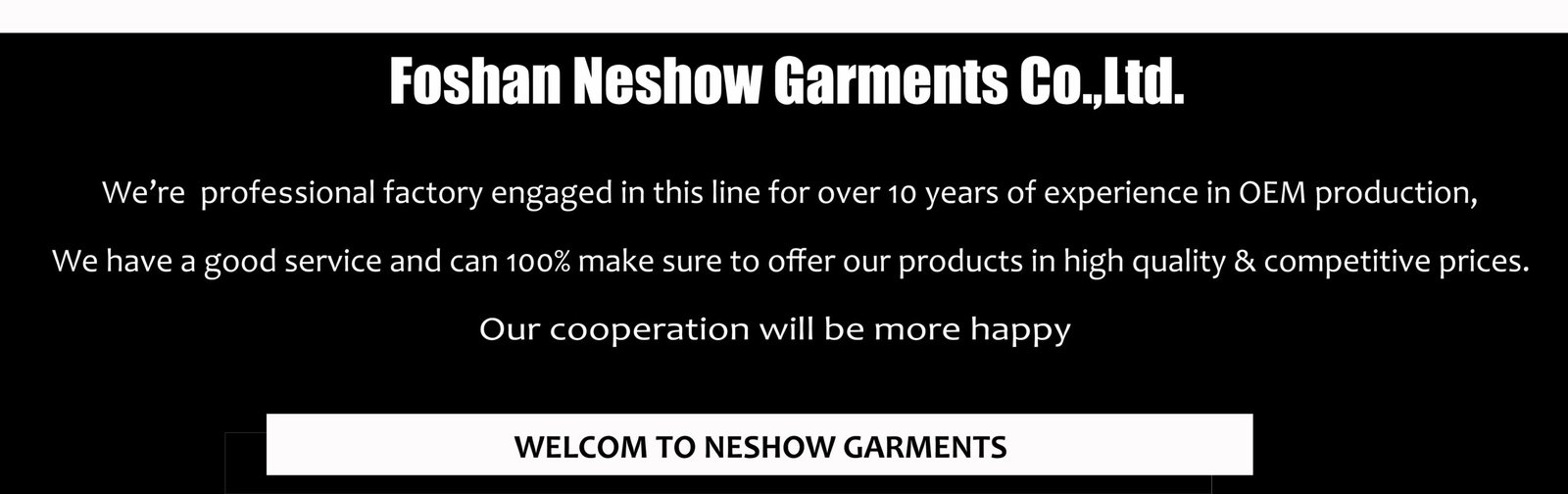 Welcome to Foshan Neshow Garments Co., Ltd.