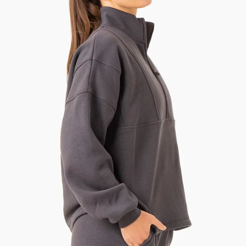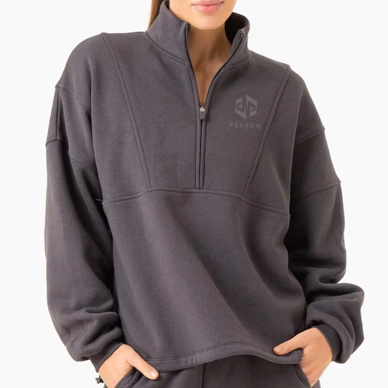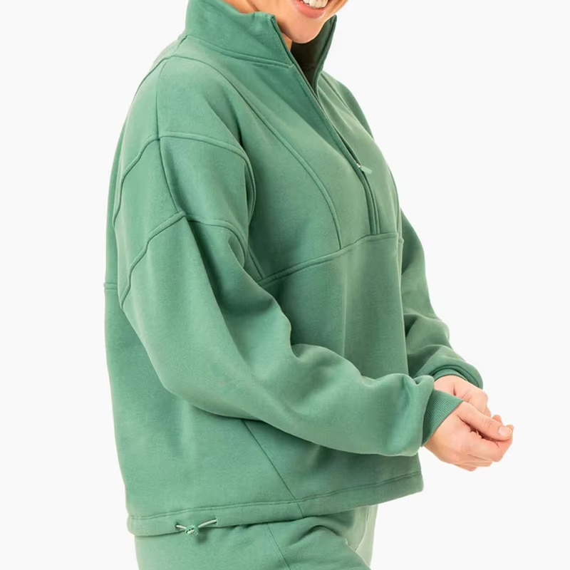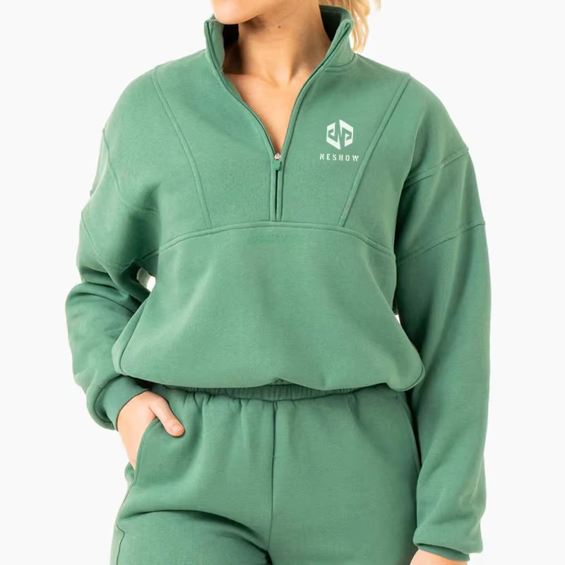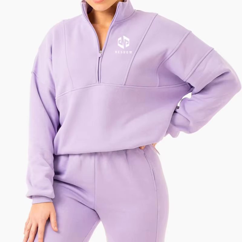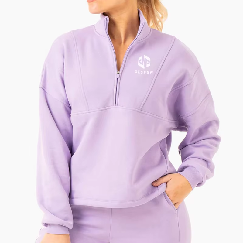 Hot Sales Gym Wear Long Sleeve 12 Zip Pullover Women Plain Sweatshirt